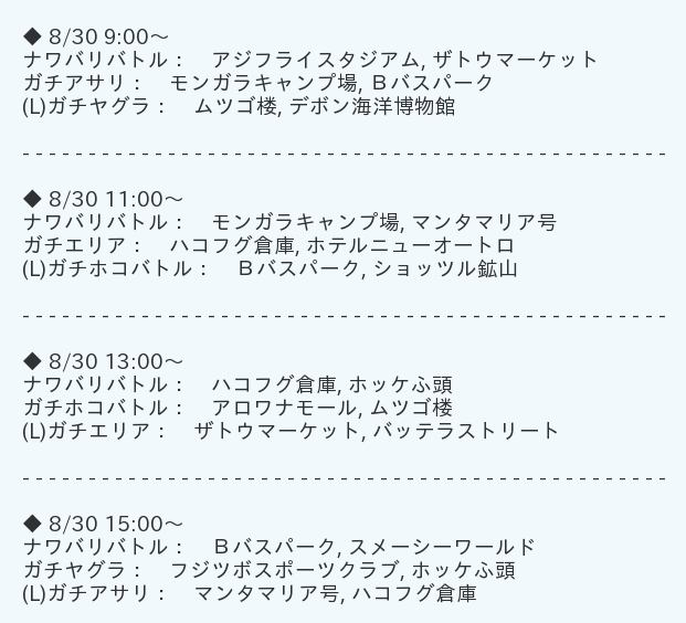 スプラトゥーン2 ステージ情報 09/02 2300 09/03 0100 レギュラーマッチ Bバスパーク モズク農園 ガチマッチ (ガチアサリ) バッテラストリート スメーシーワールド リーグマッチ (ガチエリ 右と左、2つのエリアに分かれているステージです。 相手の陣地には、 4つの入り口 から登ることができます。 鉄橋 が横に伸びているので、チャージャーの射線が通りにくいイメージ